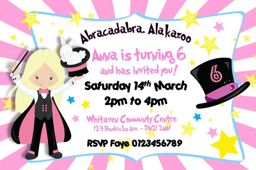 Girls Personalised Magician Magic Trick Birthday Party Invitations X 10 Ebay